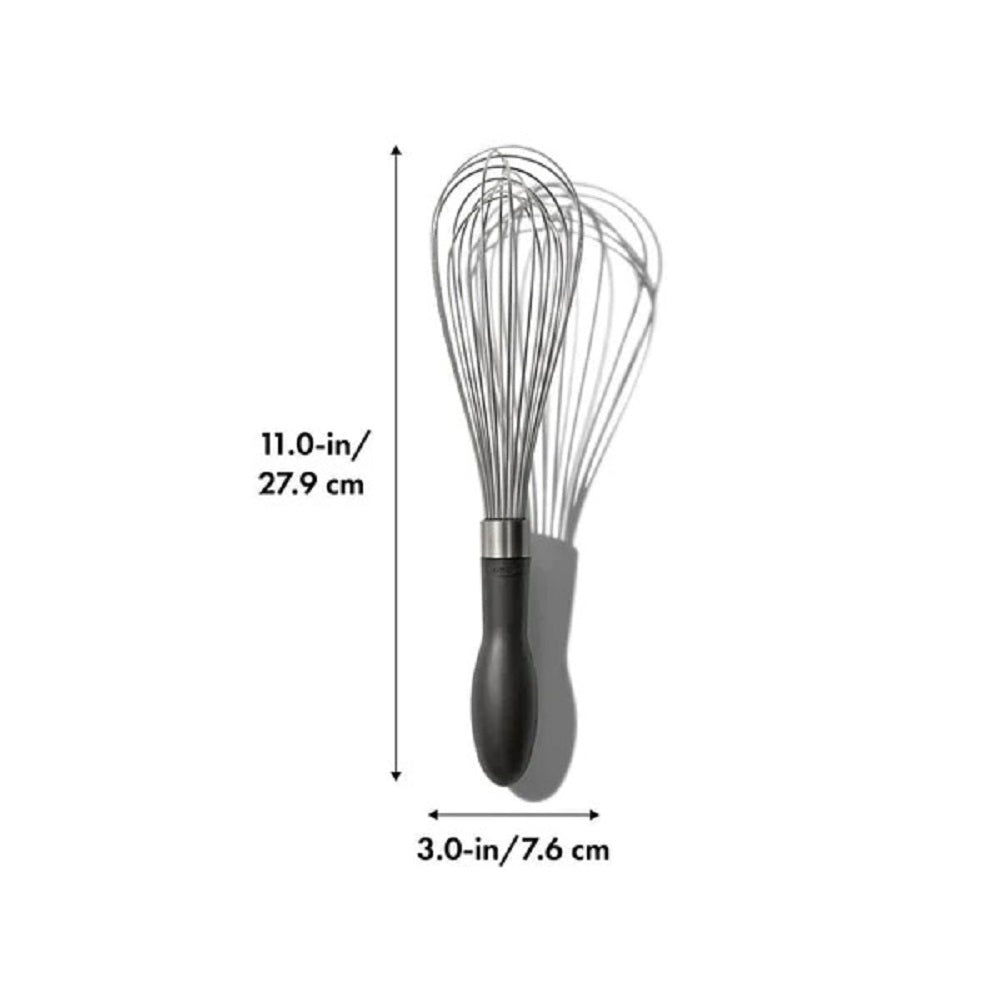 The Balloon Whisk's shape is ideal for whipping ingredients for maximum fluffiness. Our Whisks feature polished stainless steel wires and teardrop-shaped handles that fit comfortably in the palm of your hand. The soft handle won't slip even in wet hands.