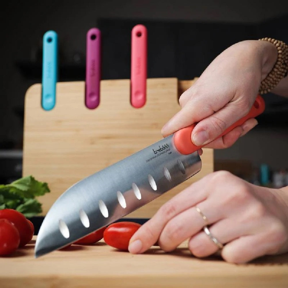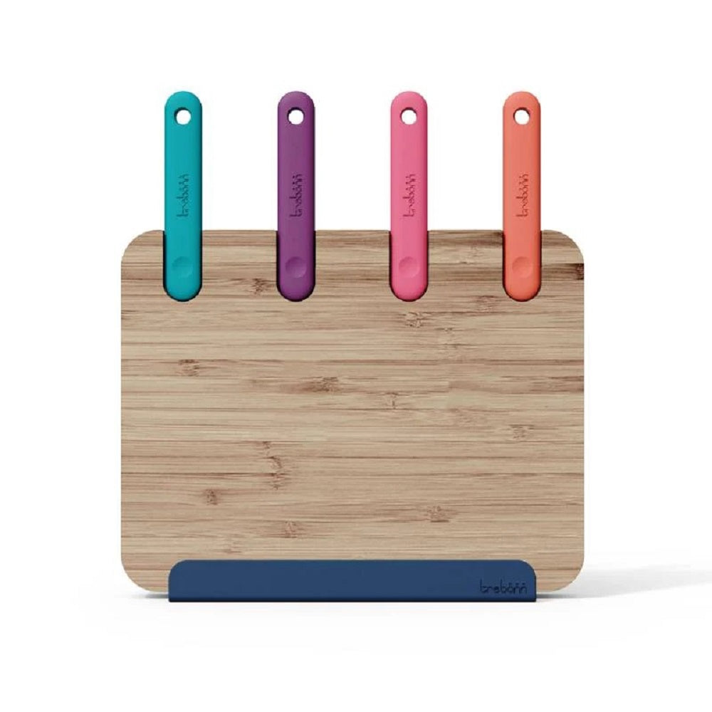 Trebonn - Block Chopping Station, Set of 4 Japanese Stainless Steel Knives With Bamboo Block, Smartphone And Tablet Stand And Bamboo Chopping Board 30 x 20 Cm High quality, Japanese stainless steel knives with premium Bamboo chopping board Set Includes; 7" Chefs Knife, 8" Bread Knife, 7" Santoku Knife, 7 "Salami/Paring Knife?, Bamboo chopping board and storage block with integrated iPad/cookbook stand Magnetic knife holders store the knives neatly Smooth Bamboo chopping board, with non-slip, silicone base Stylish and compact design