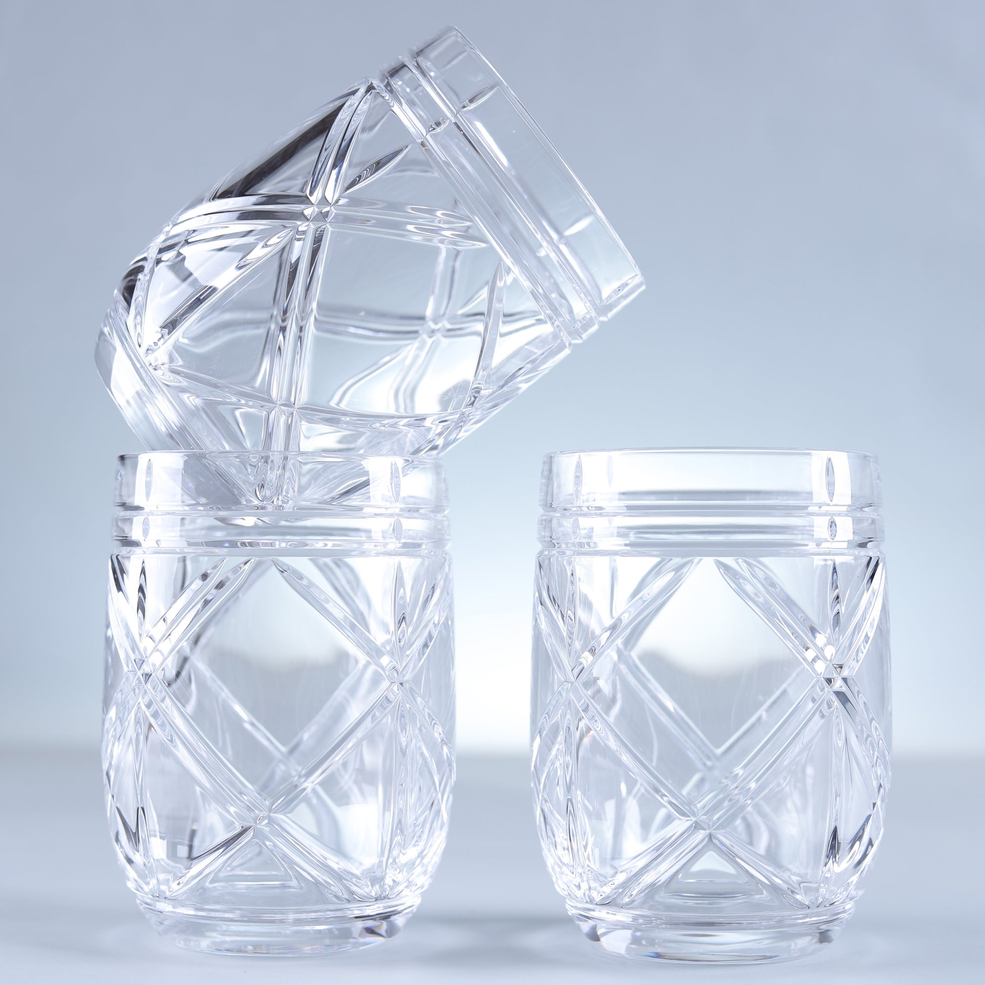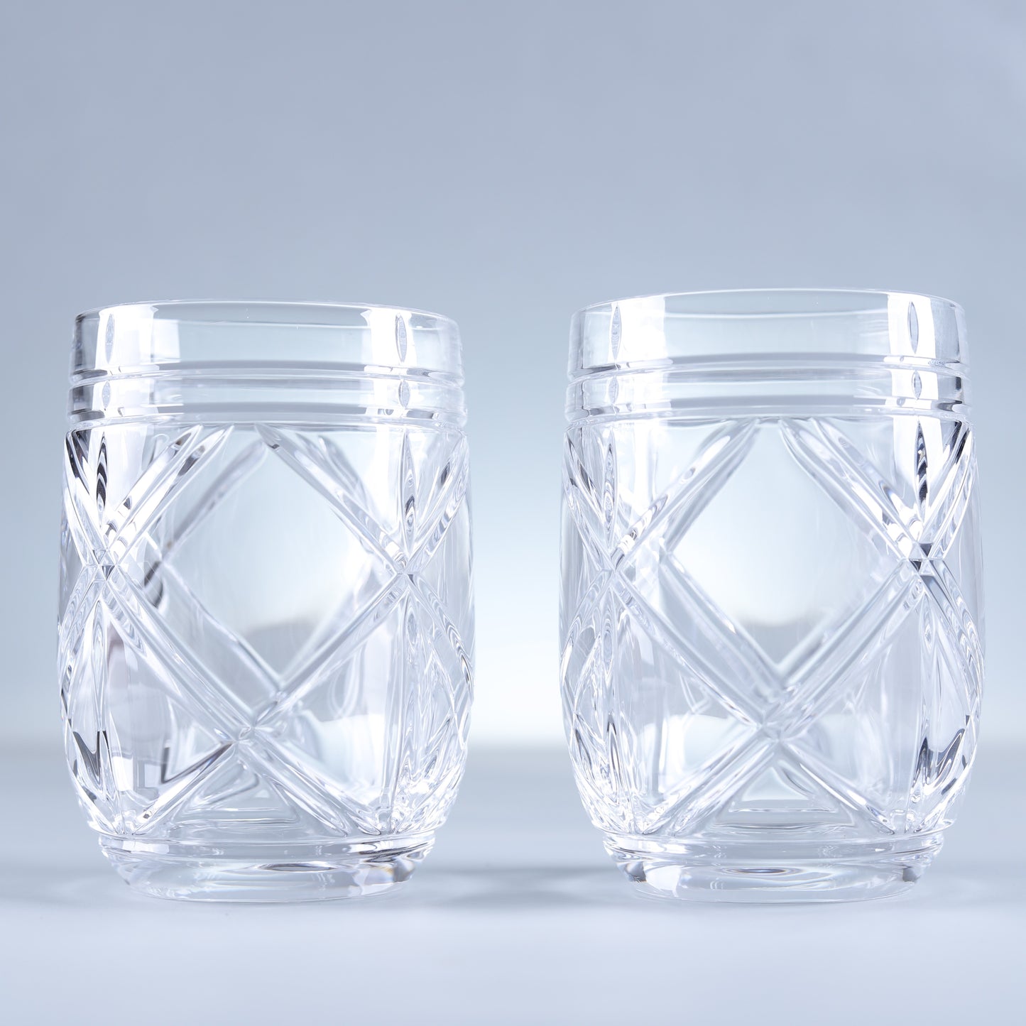 Check stemless tumblers are perfect for fine wine, whiskies, cocktails, juices, and soft drinks and are a true expression of lifestyle. Classical and yet distinctive in design, they are the perfect way in which to enjoy drinks with friends and good company. These stylish glasses add a touch of luxury and sparkle to your home bar or table setting.