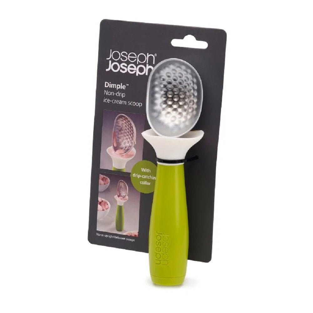 This clever ice-cream scoop has an integrated collar and can be stood upright to avoid any drips between scoops. Stands upright between scoops. Integrated drip-catching collar Tough zinc alloy head cuts through hard ice cream and sorbet with ease