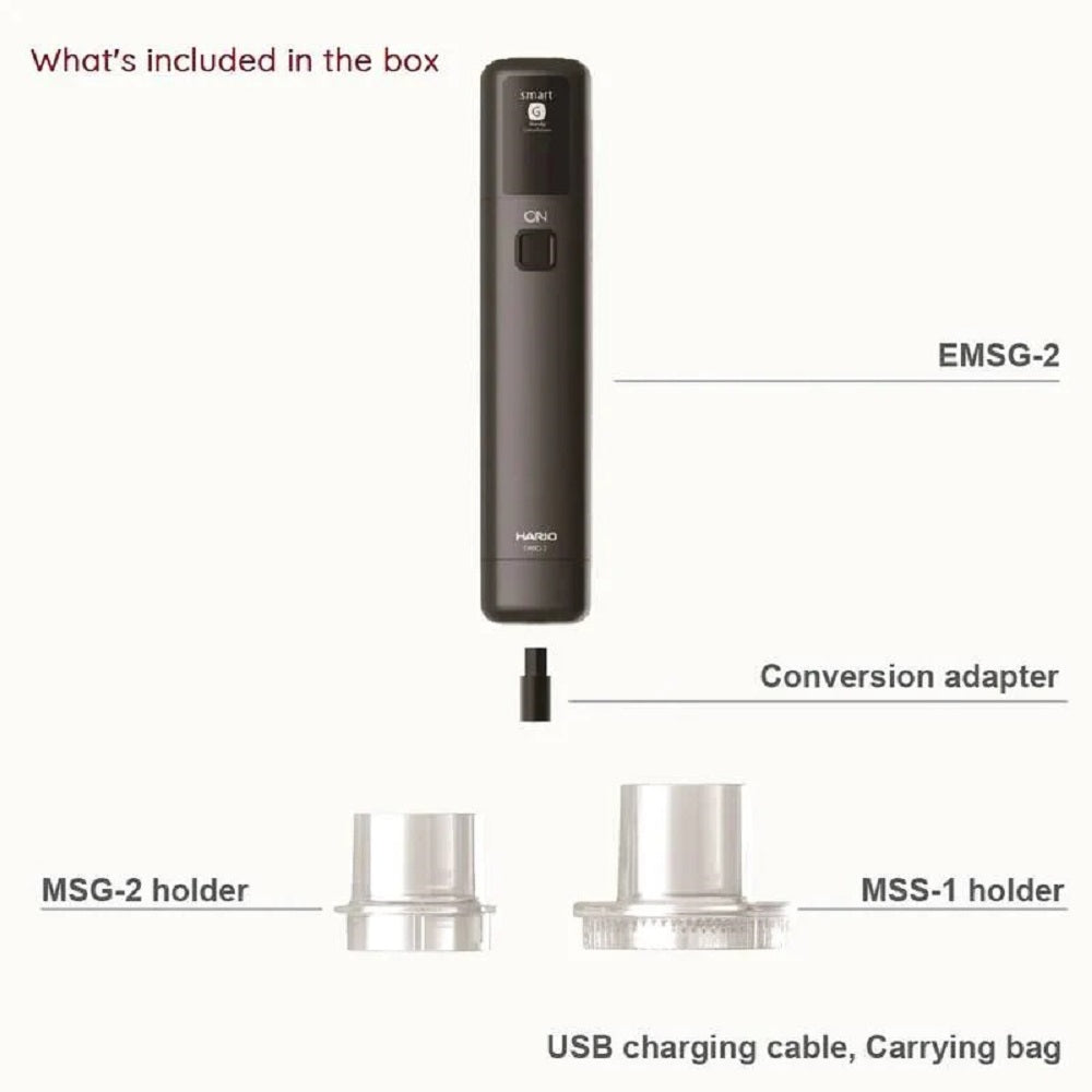 Craving the convenience of an electric grinder but still love the feel of a manual one? The Hario Electro Solo Mobile Mill Stick is the perfect solution! This compact and powerful electric attachment transforms your Hario MSG-2 and MSS-1 grinders into an automatic coffee grinder, no more strenuous hand cranking.