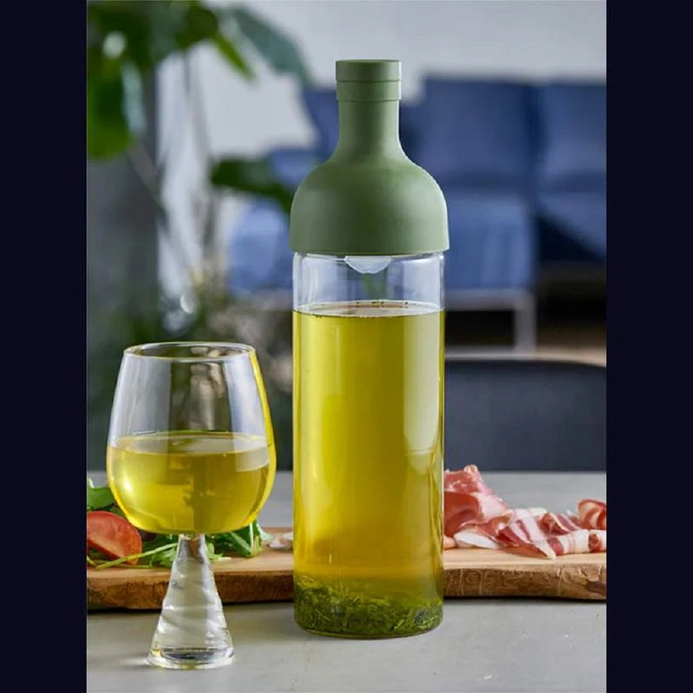 This Filter-in-bottle is designed with the idea to enjoy cold brewed tea like wine during meals. We bring this wine bottle-shaped filter-in bottle. The filter is fixed onto the spout, so you can pour directly and cherish refreshing iced-tea anytime, anywhere.