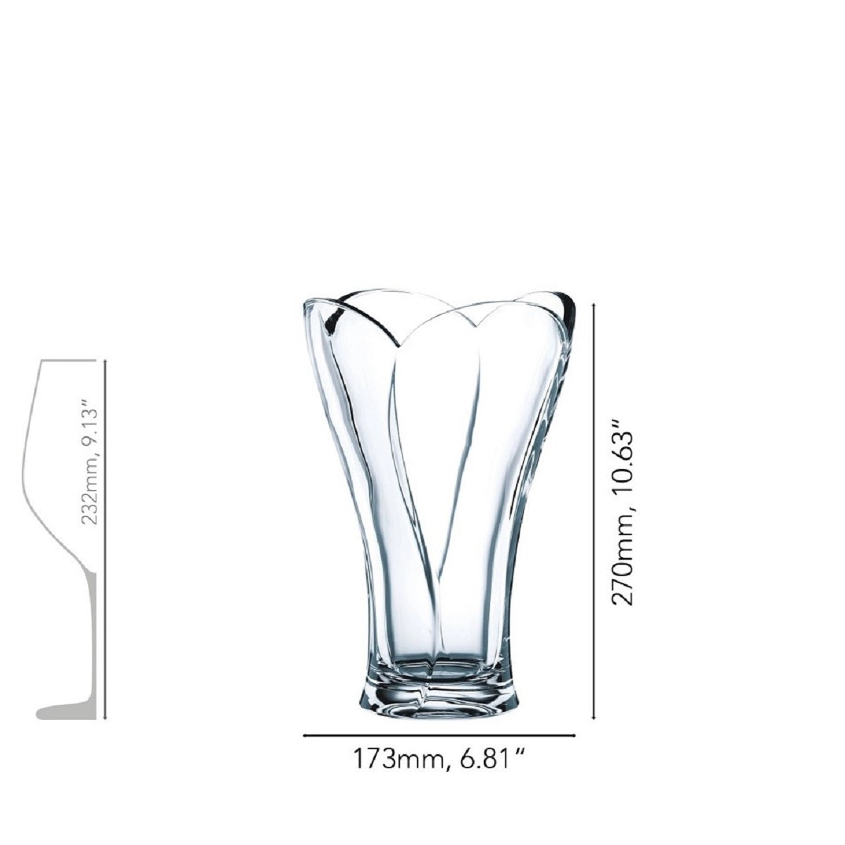 This vase creates the perfect symbiosis with a beautiful bouquet of flowers. Made from high-quality crystal glass, our vase collection offers affordable luxury for your home. The NACHTMANN Calypso collection makes every day a special day. In elegant style and with a touch of luxury, NACHTMANN fills life with glamor and joy. This product is machine-made. Due to the manufacturing process, small tolerances in the measurements are possible. This product is made of glass, which can break and create sharp shards if tipped over or dropped.
