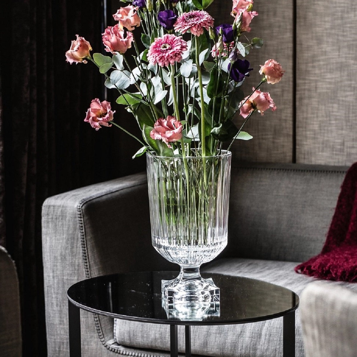 The vase acts as a striking focal point for elaborate interior styling. Whether placed on a grand banquet table or gracing the intimate setting of a soirée, this centrepiece vase embodies elegance and timeless beauty, enhancing the surroundings with its captivating presence. This product is made of clear crystal glass. Tall and impressive, Minerva crystal vases from NACHTMANN stand proud as a sturenning decorative centrepiece. The classic design of the Minerva vases will charm any space with its regal elegance, and the heavy base offers the stability and space to accommodate generous floral arrangements. Packaged in an attractive presentation box, Minerva makes a fantastic gift and is available in two sizes.