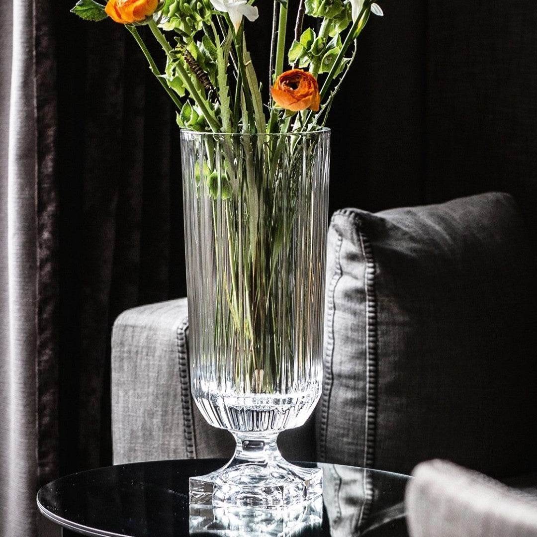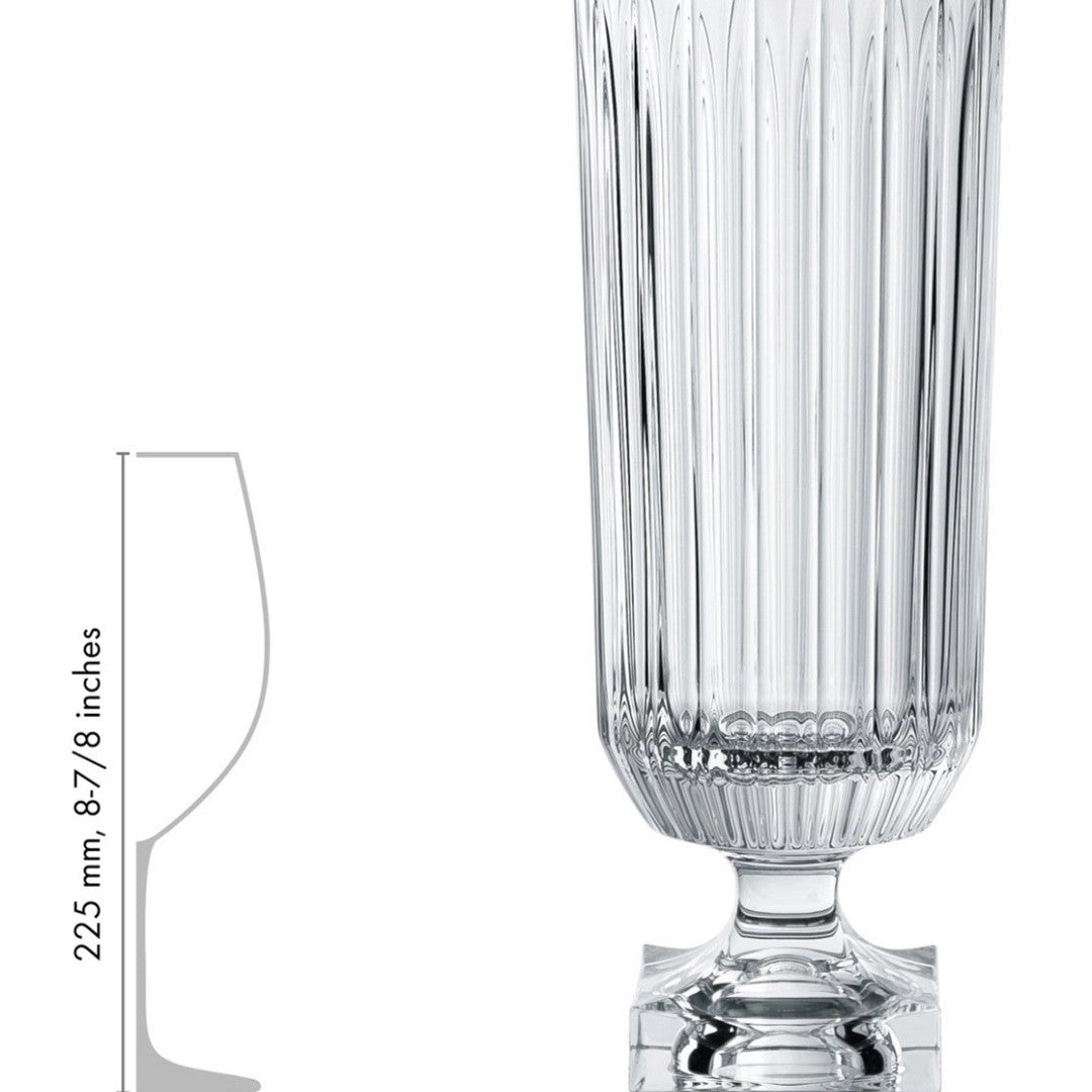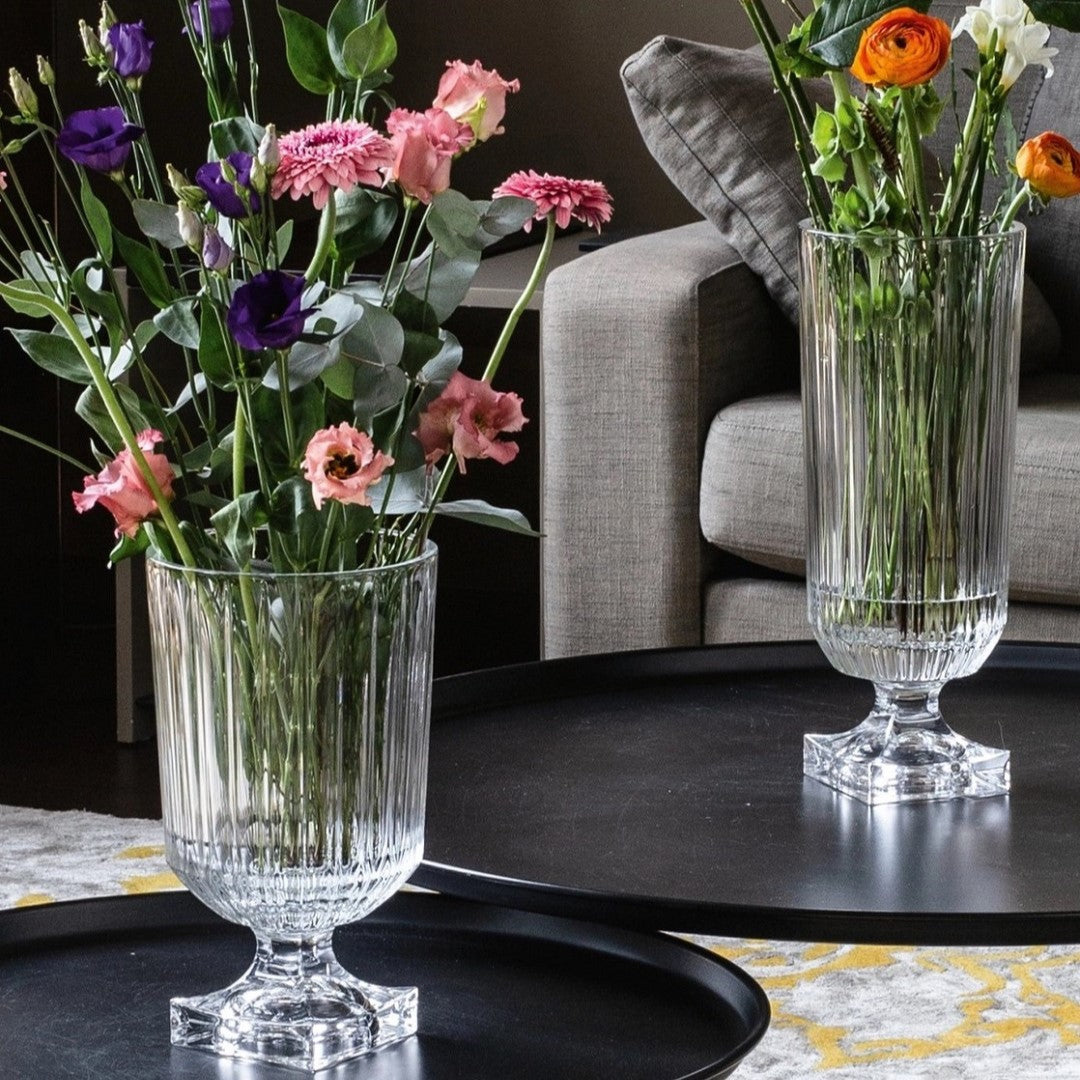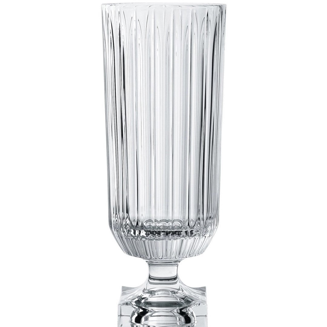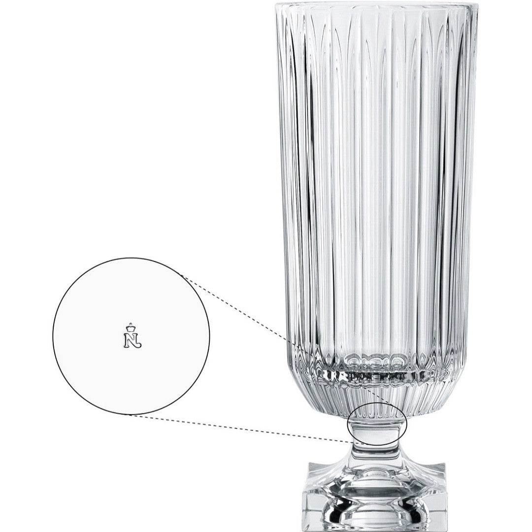 The vase acts as a striking focal point for elaborate interior styling. Whether placed on a grand banquet table or gracing the intimate setting of a soirée, this centrepiece vase embodies elegance and timeless beauty, enhancing the surroundings with its captivating presence. This product is made of clear crystal glass. Tall and impressive, Minerva crystal vases from NACHTMANN stand proud as a sturenning decorative centrepiece. The classic design of the Minerva vases will charm any space with its regal elegance, and the heavy base offers the stability and space to accommodate generous floral arrangements. Packaged in an attractive presentation box, Minerva makes a fantastic gift and is available in two sizes.