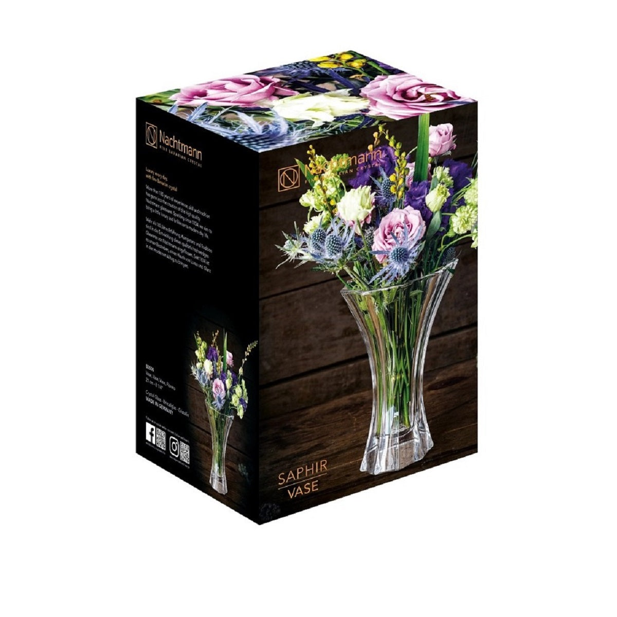 This vase creates the perfect symbiosis with a beautiful bouquet of flowers. Made from high-quality crystal glass, our vase collection offers affordable luxury for your home. The timeless design of the Saphir series impresses with its simple elegance and sophisticated lines. They enrich every day, with their symmetry, and are ideal for staging single flowers as well as floral arrangements. This product is machine-made. Due to the manufacturing process small tolerances in the measurements are possible.