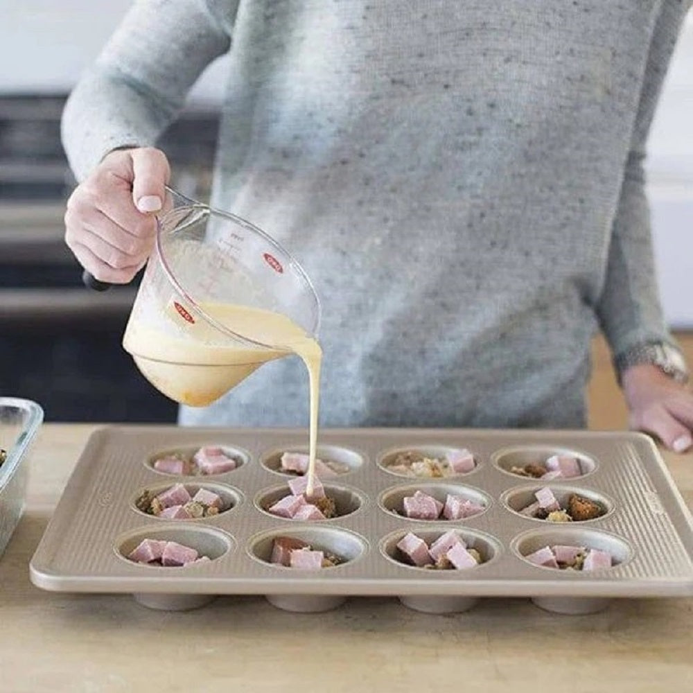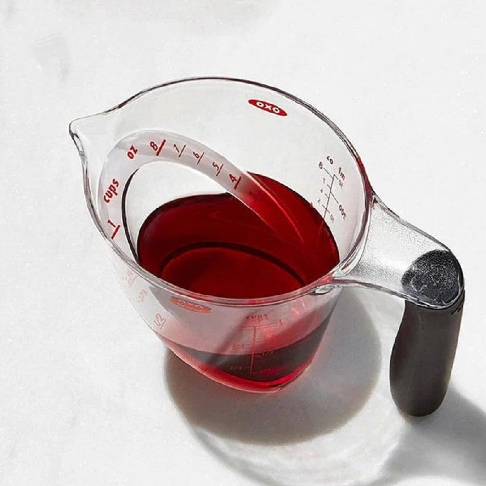 The patented angled surface allows you to see measurement markings from above as you're pouring, so you can better measure ingredients without bending or lifting the cup to eye level. Contains markings for cups, ounces, and milliliters. Also available in 1-Cup and 4-Cup versions.