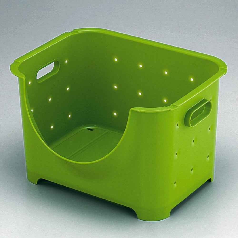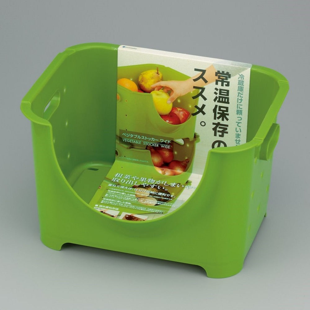 Inomata's Plastic Vegetable Stocker (Wide) - Green: Keep your vegetables fresh and vibrant with our wide green stocker. Its spacious design and durable construction provide an organized and colorful solution for your kitchen.