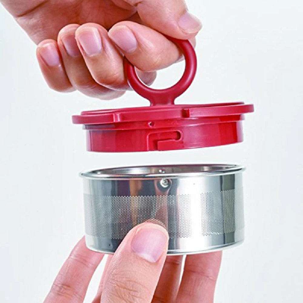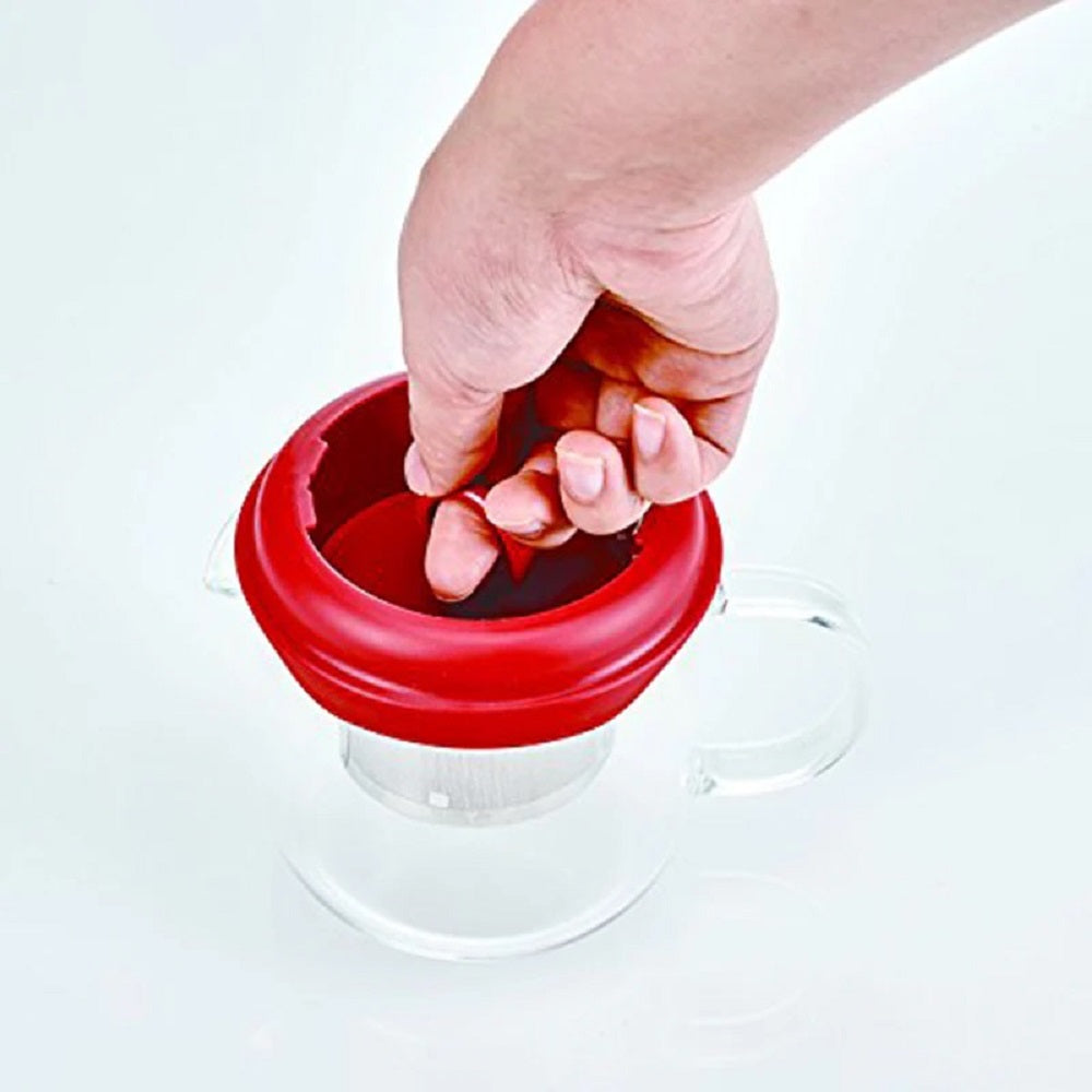 By rotating the inner lid of the tea maker, the strainer can be moved up or down. When the tea has been extracted to your favorite strength, pull up the inner lidand strainer like a teabag.