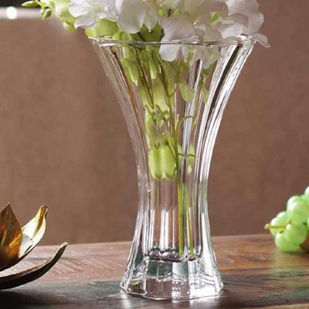 For those who love flowers and want to buy glass vases online, this mid-size crystal flower vase in high-quality crystal glass by Nachtmann is an apt choice. Part of the timeless and elegant Saphir series of vases in fine Bavarian crystal, the product impresses with its sophisticated lines. The dishwasher safe crystal vase is an ideal decor item for spaces.
