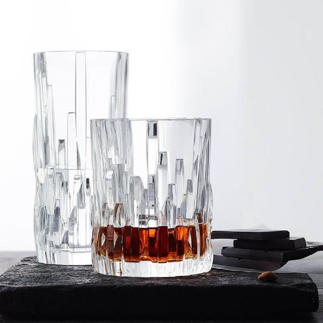 The Long drink glass is perfect for complementing any table setting, from elegant to casual. Shu Fa are modern long drink glasses, the design of which is inspired by the rhythmic calligraphic ink strokes used in depictions of Chinese mountain landscapes. The Whisky glass is perfect for complementing any table setting, from elegant to casual.