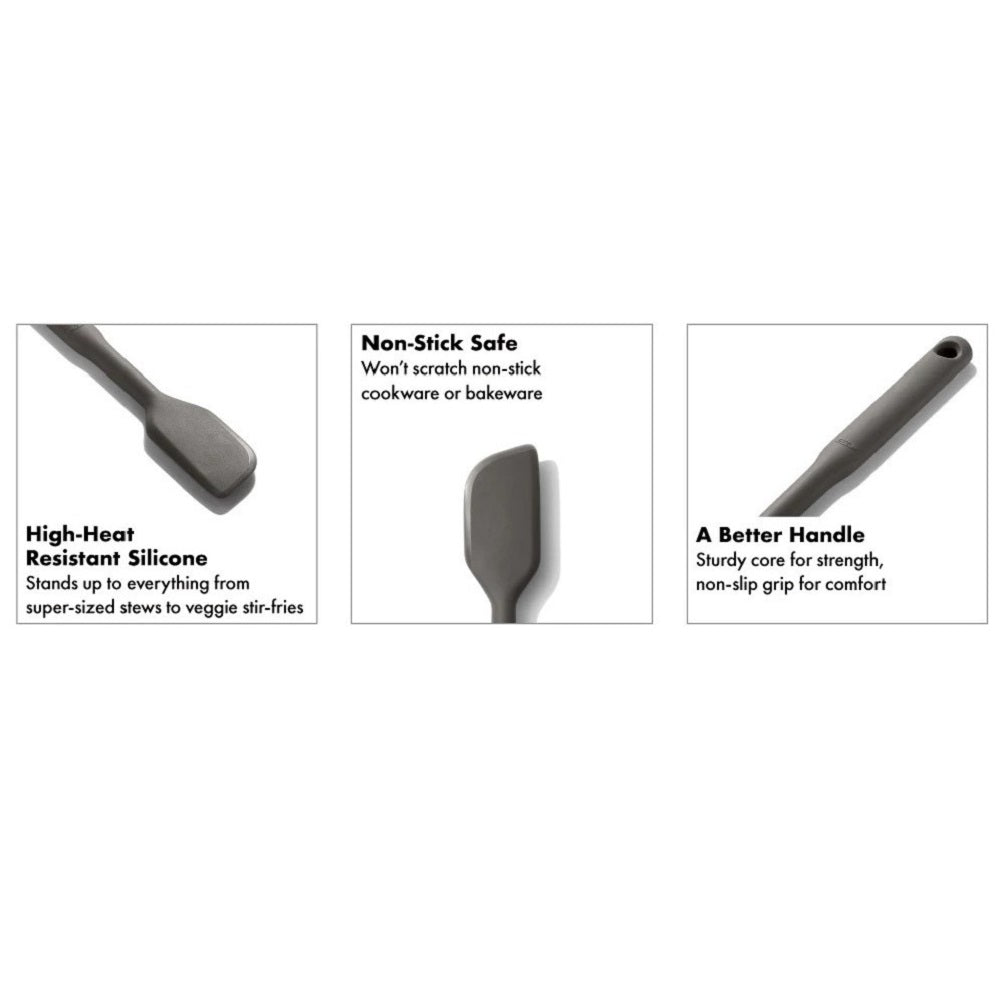 Whether you're mixing, scraping, scooping or stirring, OXO Good Grips Silicone Spatulas will get the job done. Spatula head and neck are made of easy-clean silicone and are heat-resistant up to 600 F, so they won't discolor, warp or melt.