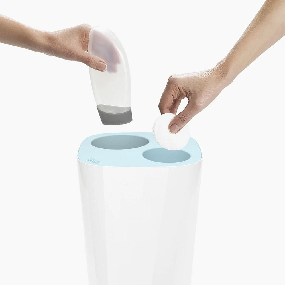 Details: Recycle your bathroom waste with this innovative separation bin. It has two compartments to let you split out your recyclable and non recyclable waste in one compact design. Split bathroom bin is a simple yet effective way to ensure you recycle your bathroom waste. The smaller compartment has a removable bucket to make emptying even easier and can be used with or without a plastic liner which is perfect for your non recyclables like make up wipes or cotton wool buds. The bigger compartment allows space for your recyclable bottles, tubes and toilets rolls. Split offers the perfect solution for those who recycle elsewhere in the house but often forget in the bathroom.