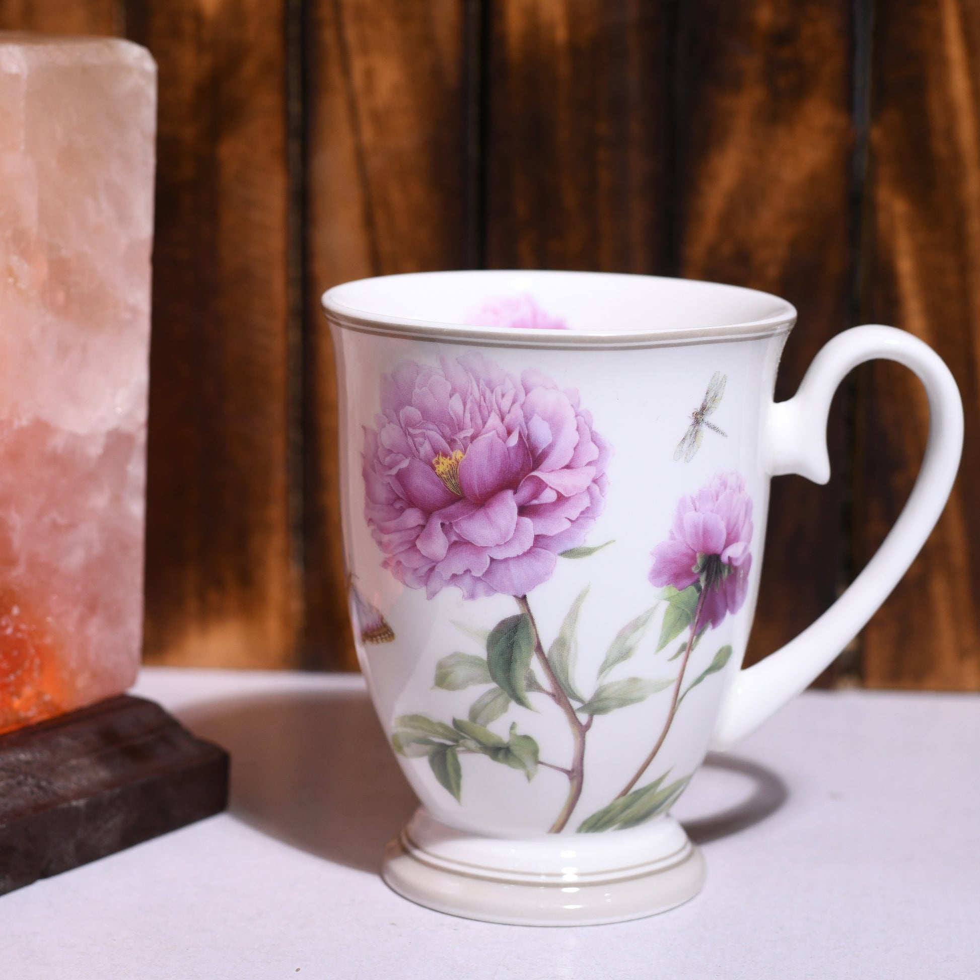 Enhance your tea set by installing the intricately designed PURPLE PEONY mugs. Get this flowery addition to your kitchen for everyday tea and coffee sessions and endure every sip. You can easily dive into long conversations with your favorite person with this set of two cups of 300 ML.