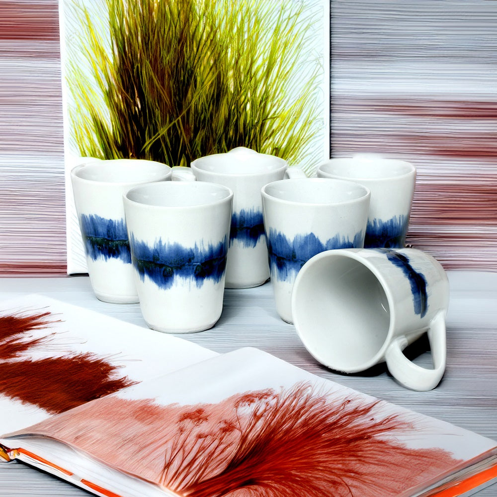 Bring a calm and serene vibe to your tea sessions with Table Joy's blue tea mug set (6 pieces). Made from high-quality porcelain, each cup holds 180 ml, perfect for your favorite tea or coffee. These mugs are designed to be both microwave and dishwasher-safe, ensuring they are easy to maintain and perfect for everyday use.