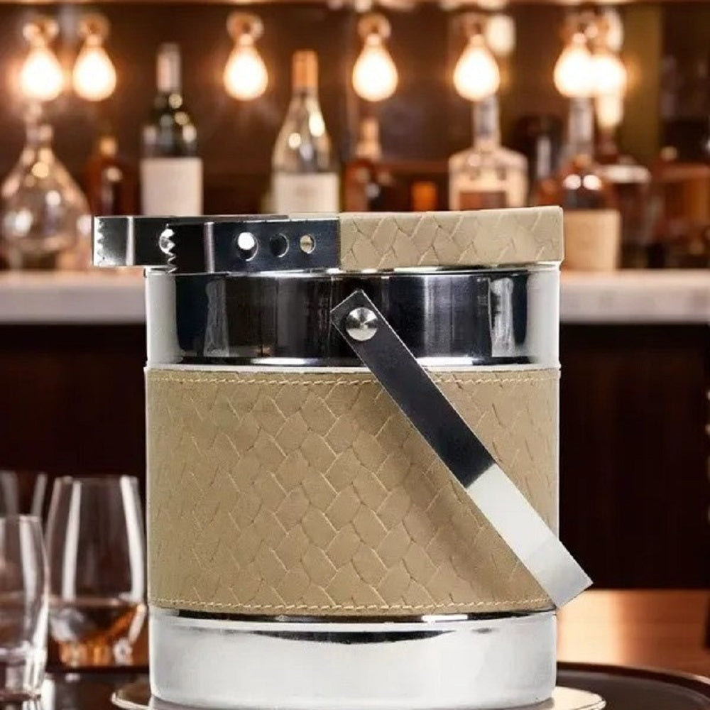 Three Sixty Leather Entwine Ice Bucket and Tong