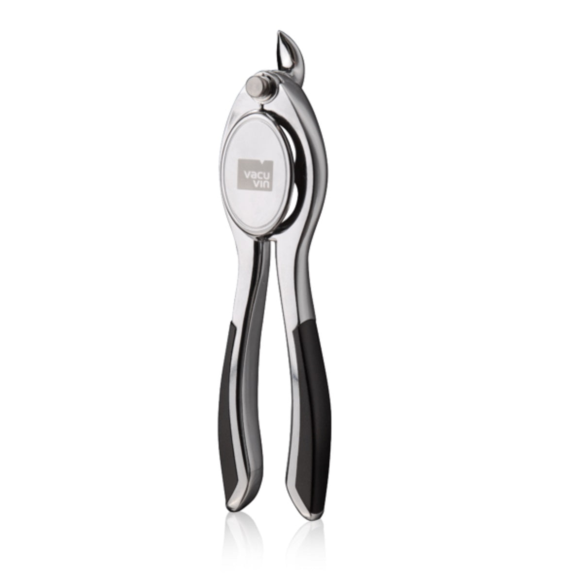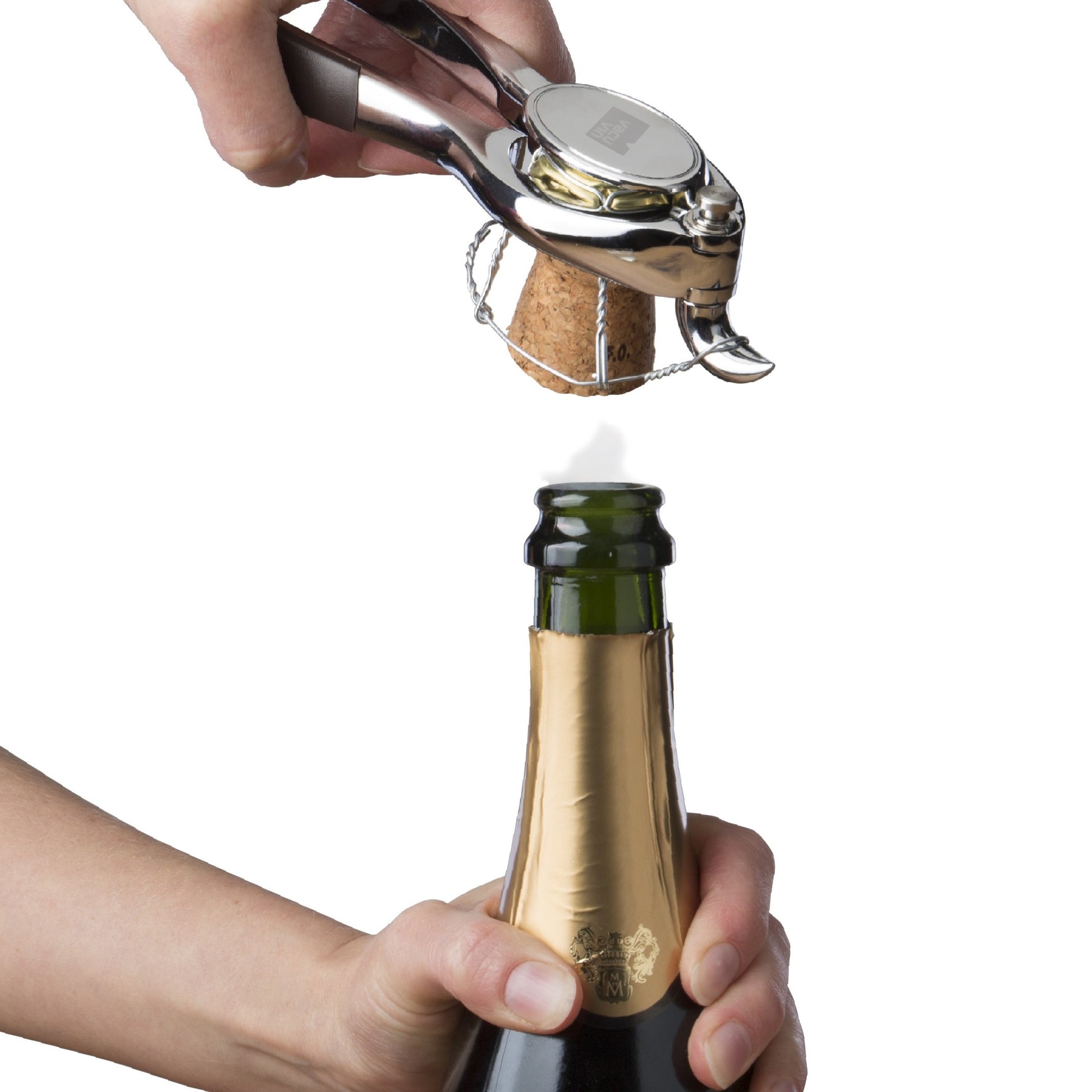 The Vacu Vin Champagne Bottle Opener removes the foil, wire cage, and cork of any champagne or sparkling wine bottle in one motion. Fold the hook through the lip of the cage, turn the Champagne Bottle Opener to clamp the cork between the two levers, pull both the cork and the cage with a twisting motion. The Vacu Vin Champagne Bottle Openers' ergonomic and robust design makes it comfortable and easy to use. Its high-quality components make it a highly durable product for prolonged usage.
