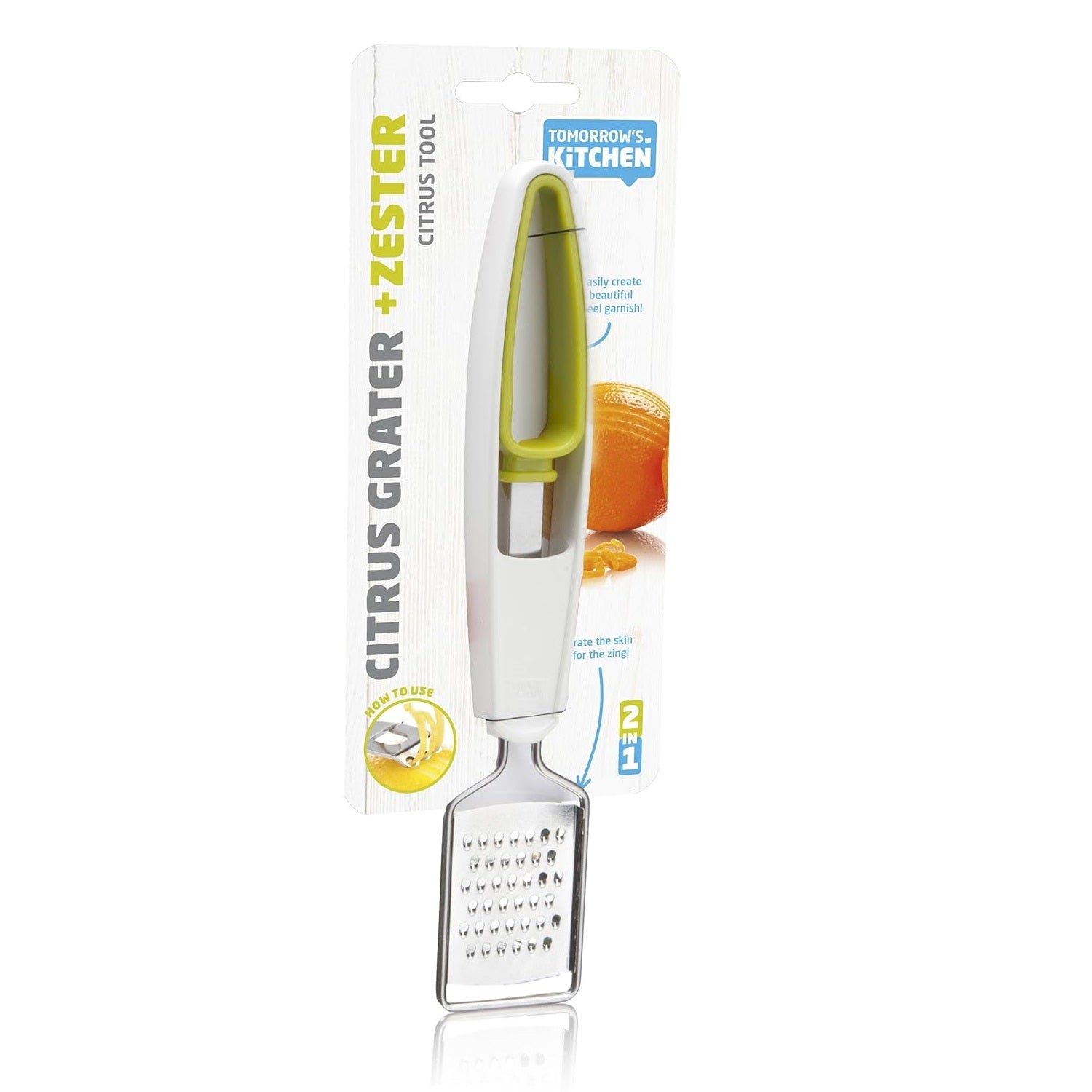 Vacu Vin - Citrus Grater & Zester The Citrus Grater Zester is a tool designed to grate citrus fruits as well as to zest them. Grating citrus fruit is an ideal way of adding extra flavour to your ingredients during baking. For a finishing touch, you can use the Zester, which is stored in the handle, for creating elegant decorative garnishes. Easily grate and zest citrus fruits with this product from the +Tools range.