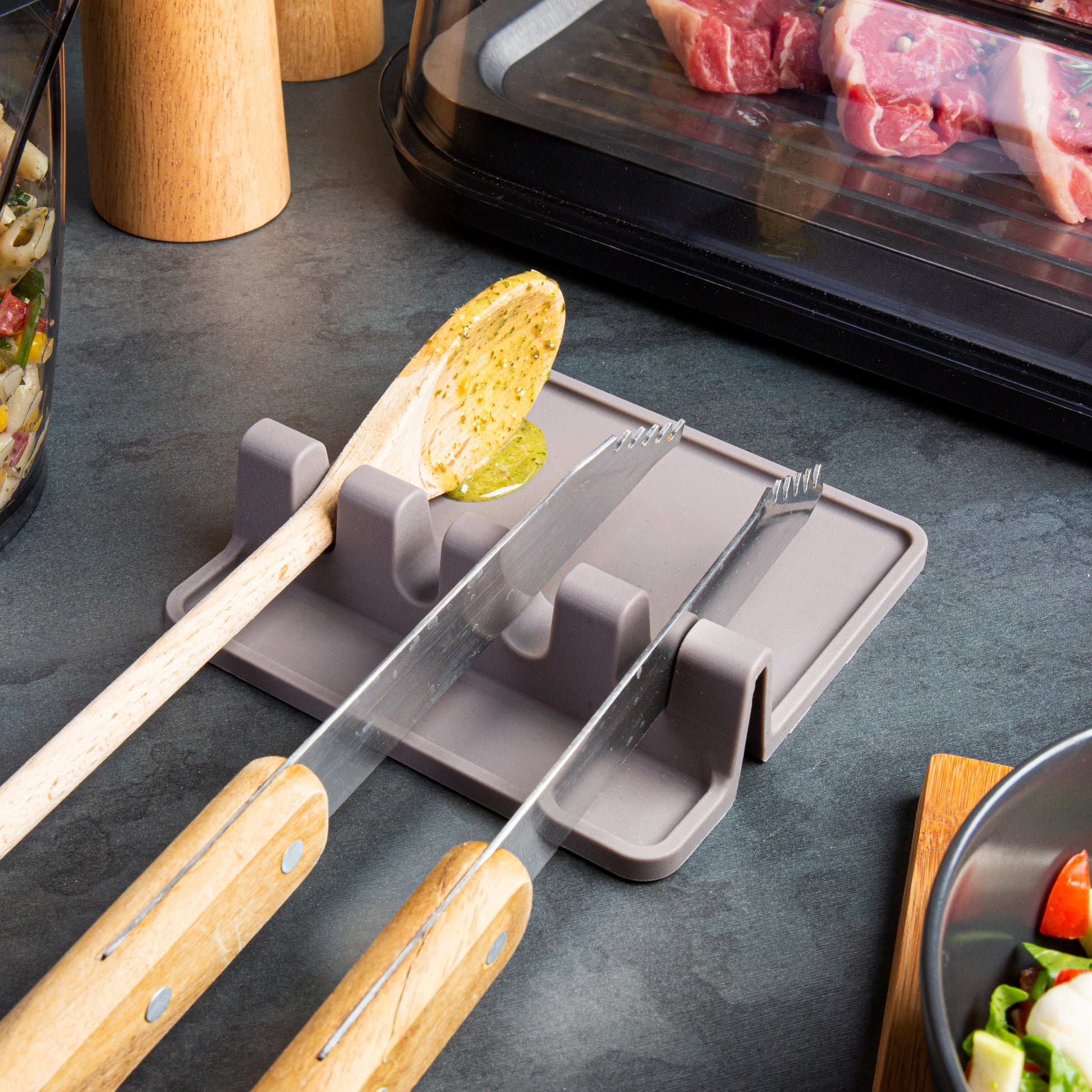 The Utensil Rest keeps your countertop clean and organized while cooking. Featuring multiple notches for different kitchen tools, it’s heat-resistant and dishwasher safe for added convenience. Tired of cluttered, messy countertops while you cook? The Vacu Vin Utensil Rest is your solution! Keep your kitchen neat and tidy by resting your spatulas, ladles, and spoons on this durable, heat-resistant tool. Enjoy stress-free cooking with everything in order. Place your utensils in one of the multiple notches designed for various kitchen tools. The Utensil Rest is heat-resistant, perfect for hot utensils, and is dishwasher safe for easy cleaning. Keeps countertops clean and organized Heat resistant for safe use with hot utensils. Dishwasher safe for easy cleaning.